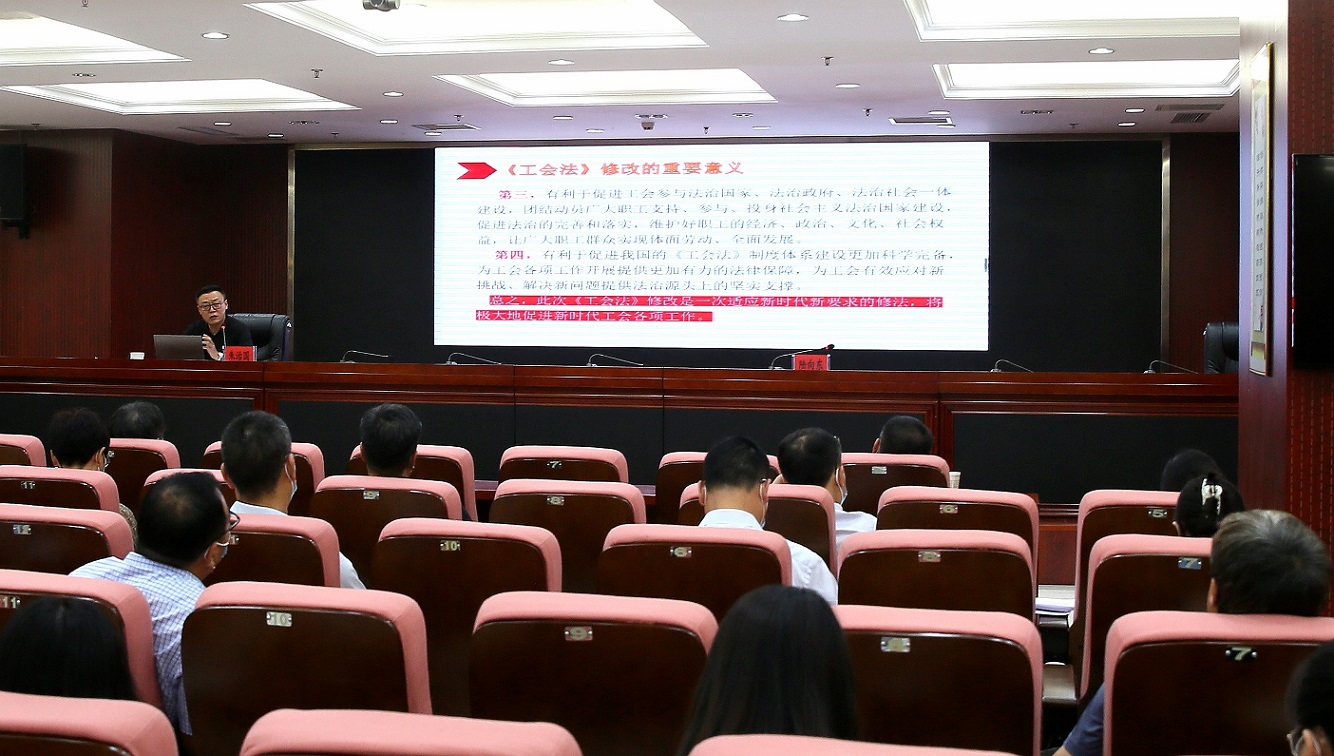 培訓(xùn)班邀請市總工會基層工作部部長朱治國圍繞新工會法、職代會操作要點及開展提案工作等方面作了專題輔導(dǎo)。