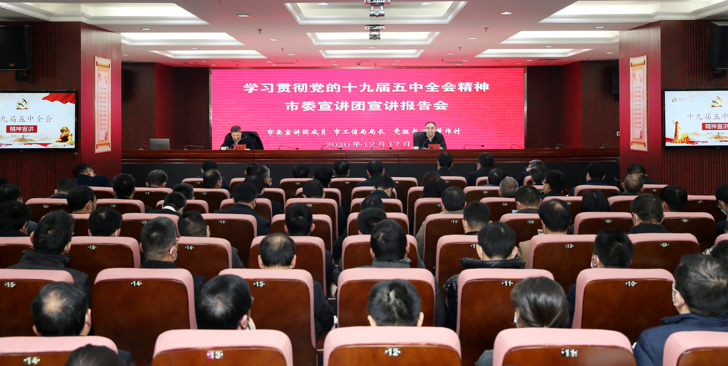 根據(jù)市委統(tǒng)一部署,1217日,市委宣講團(tuán)來(lái)集團(tuán)開(kāi)展黨的十九屆五中全會(huì)精神宣講活動(dòng)。市委宣講團(tuán)成員、工信局局長(zhǎng)、黨組書(shū)記董作村作宣講報(bào)告。集團(tuán)公司黨委書(shū)記、董事長(zhǎng)楊龍主持宣講報(bào)告會(huì)。