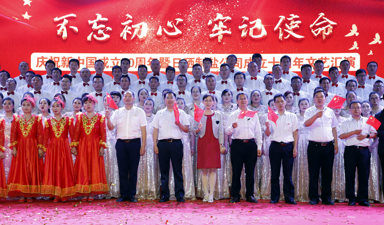 日曬制鹽公司舉辦以“不忘初心、牢記使命”為主題的慶祝新中國(guó)成立七十周年、日曬制鹽公司成立十周年文藝演出。憶初心,回顧日曬制鹽公司成立十年來的發(fā)展歷程;擔(dān)使命,展示日曬制鹽公司成立十年來發(fā)展成就。表彰先進(jìn)、宣傳典型,展示廣大員工創(chuàng)新創(chuàng)業(yè)的奮斗精神和發(fā)展信心。