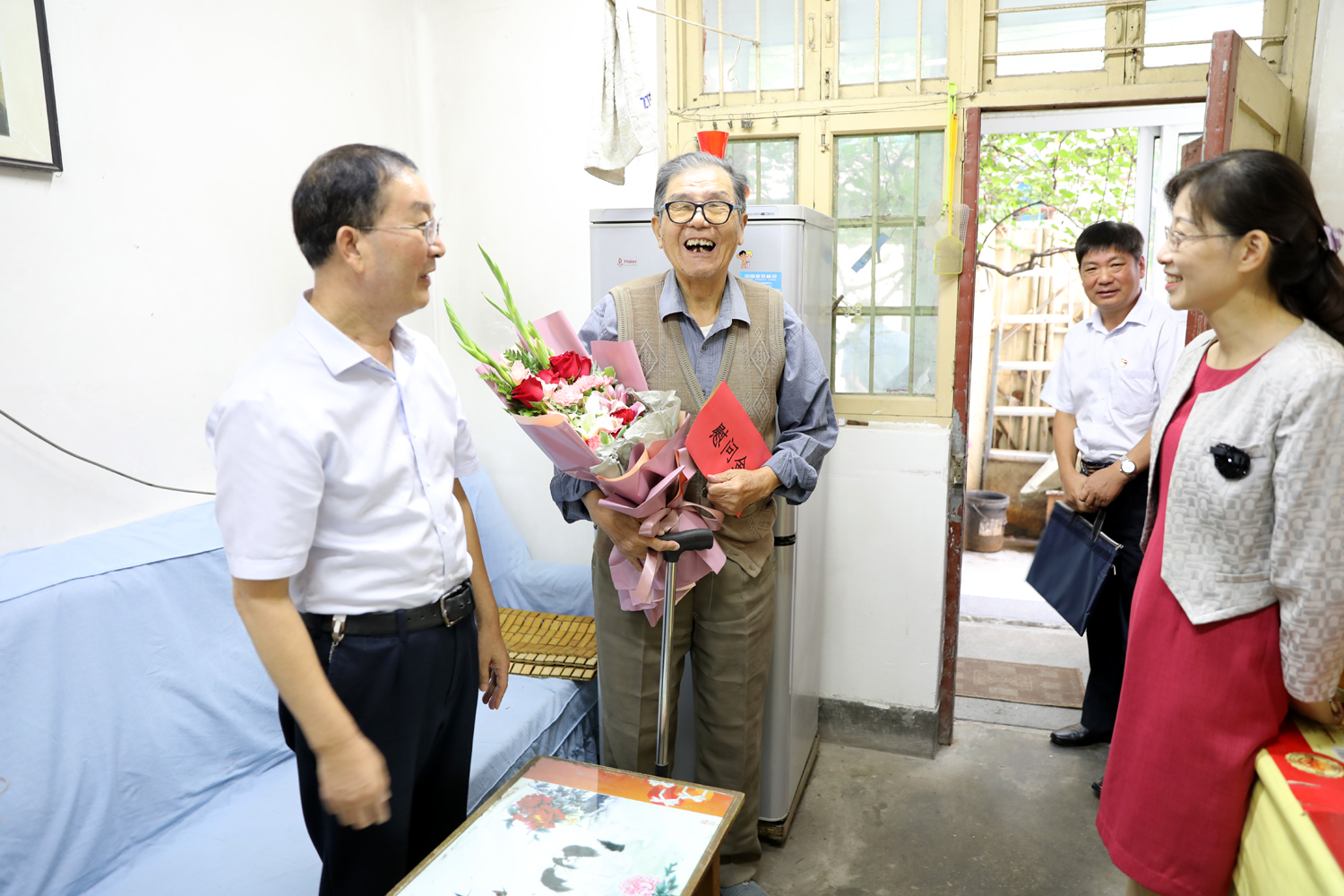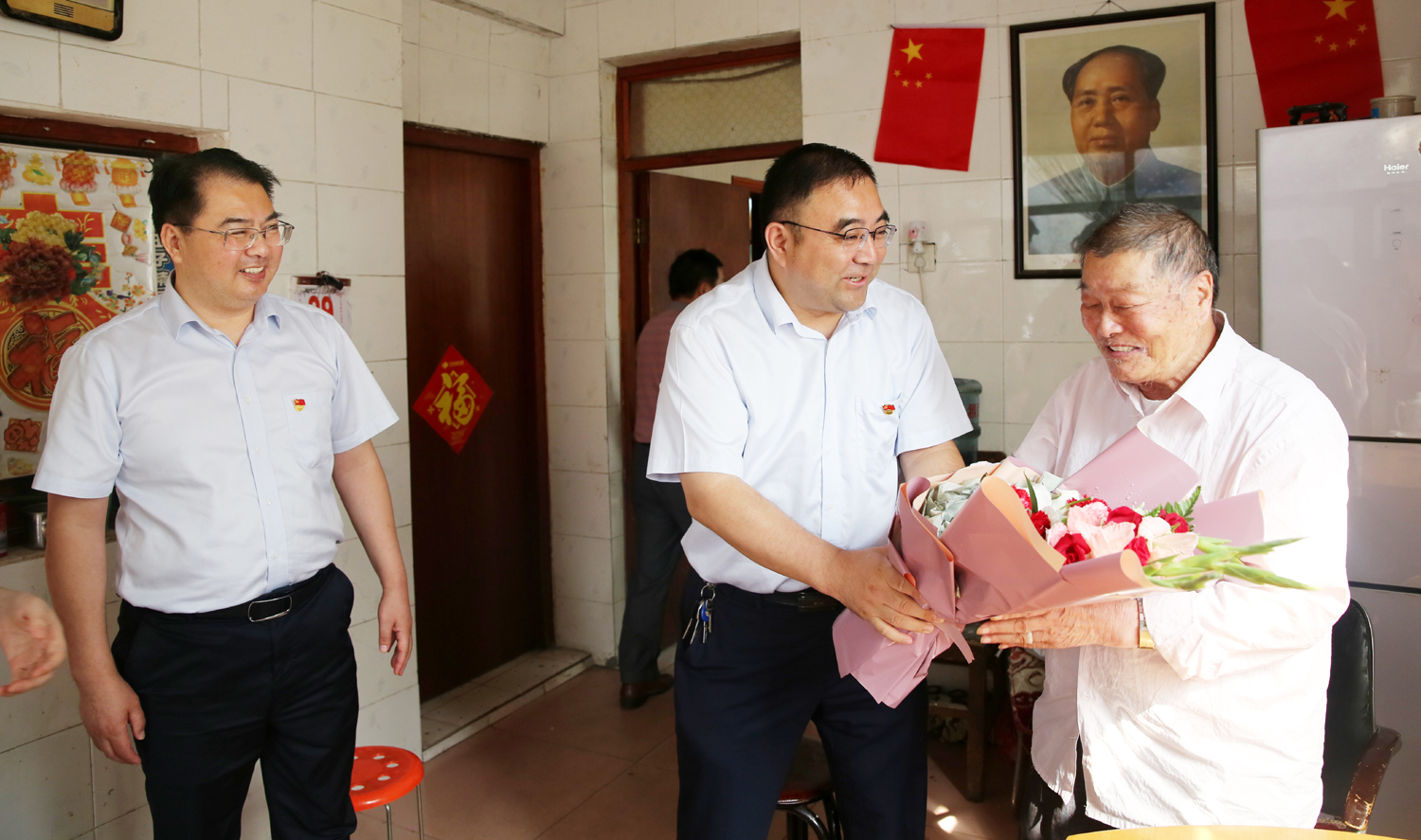 集團(tuán)公司董事長(zhǎng)、黨委書記楊龍,總經(jīng)理胡建明、黨委副書記戴鴻鳴、紀(jì)委書記汪群等領(lǐng)導(dǎo)分組走訪慰問部分建國(guó)前參加工作的老黨員、老干部,為他們送去慰問金和鮮花,同慶新中國(guó)七十周歲華誕。