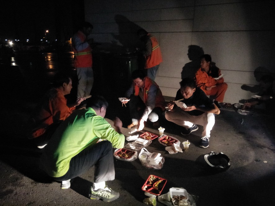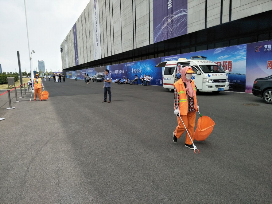 914日,連續(xù)忙碌了兩個禮拜的職工們還沒來得及休息,便又投入到“連博會”的準備工作中去。由于本屆“連博會”共有來自27個國家和地區(qū)的420家企業(yè)參展,展覽總面積達3.7萬平方米,各家展商在布置展臺時,各類生活垃圾、裝修垃圾等一度將該公司布設(shè)的100多個垃圾桶都塞滿了,在安排好人工清理的同時,該公司還安排垃圾清運車對積存垃圾進行清理清運,組織灑水車對會場及周邊道路進行沖洗,一直到918日晚上9點左右才完成準備工作。19日“連博會”開幕當天,負責現(xiàn)場保潔工作的職工們早上6點多就趕到了會場,冒雨在會場周邊開始忙碌,一臺大型清掃車和一臺灑水車也在會場旁隨時待命。到了中午,當展商們在室內(nèi)小憩的時候,室外的職工們?yōu)榱瞬坏⒄`事,站在風口匆匆地扒拉兩口混雜著雨水的盒飯,就又投入到緊張的清理工作中去。僅19號開幕當天,累計清理各類垃圾7噸左右,為“連博會”的正常召開提供了一個干凈、整潔的會場環(huán)境。