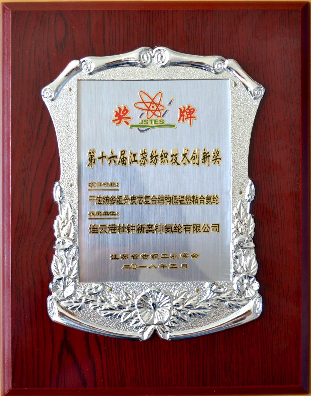 氨綸公司新產(chǎn)品獲第十六屆江蘇省紡織技術(shù)創(chuàng)新獎(jiǎng)