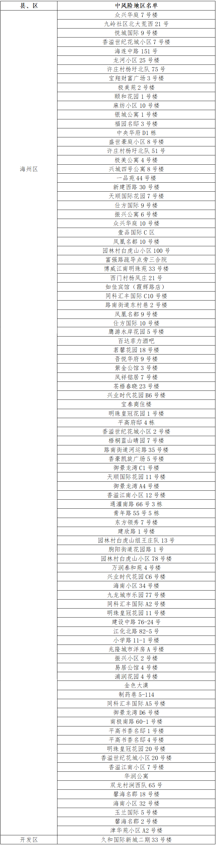 海州區(qū)贛榆雞蛋菜煎餅店(洪門菜市場(chǎng)門口)、洪新小區(qū)90-71號(hào),連云區(qū)萬(wàn)潤(rùn)華泰小區(qū)7號(hào)樓,灌云縣南崗鎮(zhèn)崗東村殷莊20號(hào)由中風(fēng)險(xiǎn)地區(qū)調(diào)整為低風(fēng)險(xiǎn)地區(qū)。
