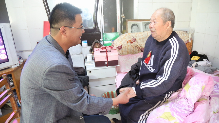 在省勞模李成永家中,93歲高齡的老人家熱情地拉著工作人員的手,激動(dòng)地說(shuō):“感謝組織的關(guān)懷,企業(yè)一直沒(méi)有忘記我們這些老工人呀!”工作人員囑咐他要保重身體,安享晚年。