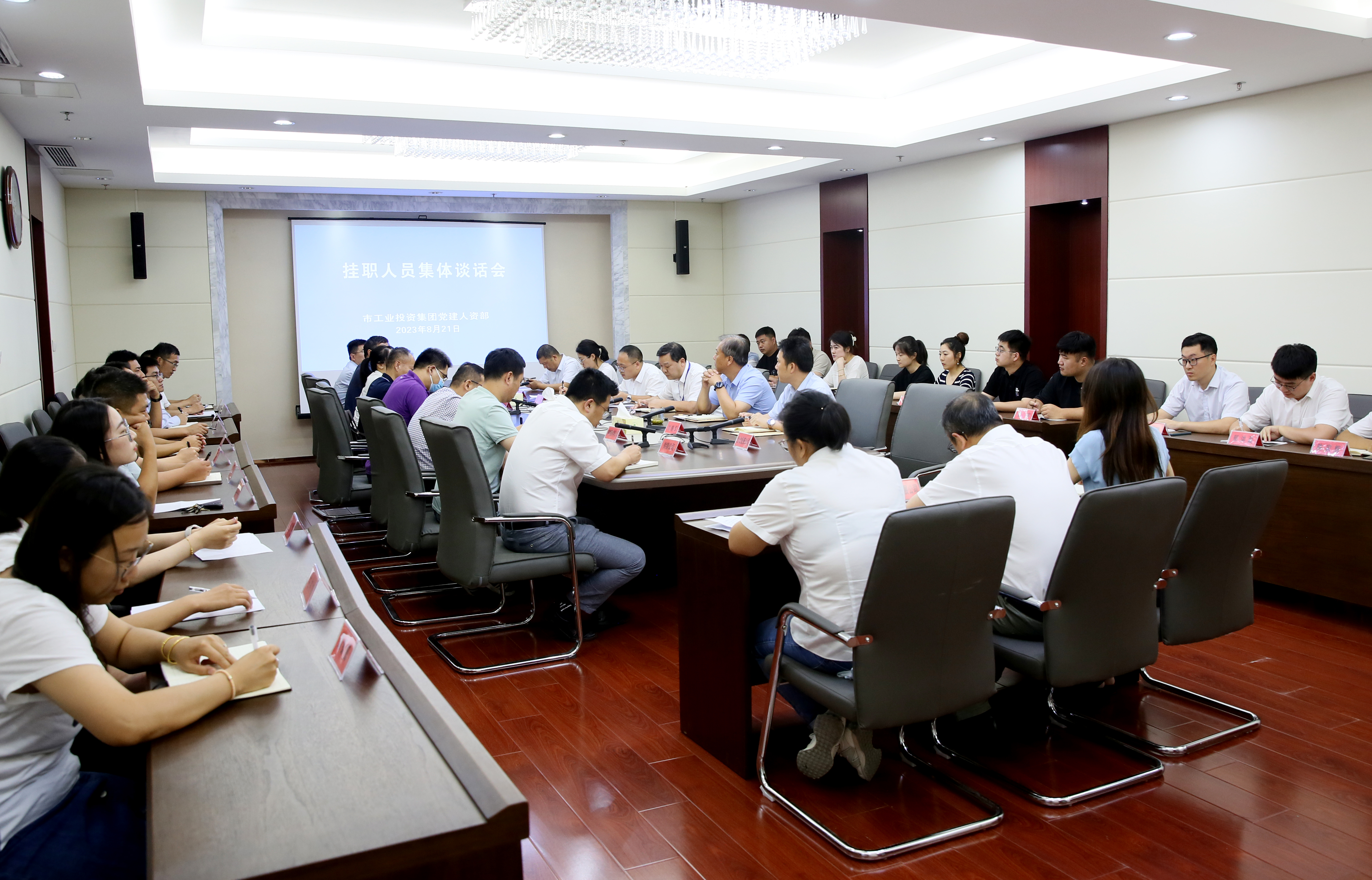 8月21日,集團(tuán)公司召開掛職人員集體談話會(huì)。集團(tuán)公司黨建人資部相關(guān)同志、22名掛職人員參加會(huì)議。