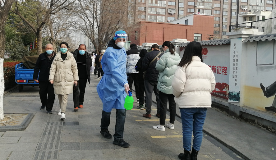 他們是知險而為的逆行者。疫情發(fā)生以來,投資公司各級黨組織深入推進(jìn)“黨旗飄一線、戰(zhàn)疫沖在前”黨內(nèi)專題教育實(shí)踐活動,涌現(xiàn)出王同林、汪洋、楊波、丁樂東等一批主動請戰(zhàn)上“疫”線的志愿者,成為港城“疫”線那一抹“天使白、志愿藍(lán)”風(fēng)景里熠熠生輝的“徐圩點(diǎn)”。他們受居家隔離因素制約,就近參加街道社區(qū)的疫情防控工作,協(xié)助社區(qū)全方位開展核酸檢測、電話查訪、信息錄入、樓戶排查、場所消毒、巡邏宣傳等志愿服務(wù)工作。他們中間既有夫妻齊上陣,也有父子同站崗;既有在崗黨員,也有二線黨員。家住興業(yè)時代小區(qū)的侍作華、趙啟英夫婦,自參加防疫志愿行動以來,每天負(fù)責(zé)300份居民物資送貨任務(wù),先是由妻子搬運(yùn)到樓下,再由丈夫挨家送上門。相對于無電梯的多層樓,身穿“大白”的侍作華每天樓梯來回數(shù)十趟,即使是跑酸腿腳、濕透衣服、干了嗓子,也沒有遞減他堅(jiān)持就是勝利的戰(zhàn)“疫”信心。作為工投集團(tuán)防疫志愿服務(wù)隊(duì)隊(duì)員的孫海波,在派駐同科小區(qū)的日子里,每天身穿密不透風(fēng)的“大白”防護(hù)服,一穿就是十幾個小時不下身,即便是汗水浸皺了雙手、臉頰勒出了溝痕,仍然馬不停蹄忙著安排人員做核酸、上門排查健康碼情況,近距離接觸黃、紅碼人員,和同事先后完成小區(qū)1000余戶家庭兩次排查和35000人次核酸檢測人員身份信息采集工作。被社區(qū)稱為“志愿書記”的胡可志,從戰(zhàn)“疫”動員令發(fā)出的當(dāng)天,就志愿參加平山社區(qū)的防疫工作。一人多角色的他,既是秩序員,也是消毒員;既是喊話員,也是宣傳員;既是居民健康碼的驗(yàn)證員,也是“一米線”距離的監(jiān)督員。在連續(xù)多天的志愿服務(wù)中,也讓社區(qū)人員徹底認(rèn)可他這位不錯的“組織員”。悅升公司居家隔離的青年員工潘浩聽說單位值守員工王亮因突發(fā)哮喘舊疾,及時通過社區(qū)報備、藥房購藥、卡口傳藥等環(huán)節(jié)把應(yīng)急藥物轉(zhuǎn)送到王亮手中,成為架設(shè)“愛心通道”的有心人。