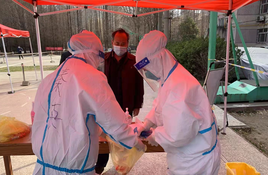 然而隨著疫情愈發(fā)嚴(yán)重,小區(qū)核酸檢測員人手又緊張了起來,“我可以,這幾天我都學(xué)會了,最基本的我都會”秦英又是第一個舉手到最前線。這下她更忙了,每天凌晨三點起床做飯,五點社區(qū)報到,一直堅守到晚上八點。為了節(jié)省防護服,她一般都要等到中午2點多鐘才休息吃飯,這股毅力讓社區(qū)、街道領(lǐng)導(dǎo)看在眼里、服在心上,連一直牢騷怪話的幾個群眾也為她由衷地豎起大拇指。
