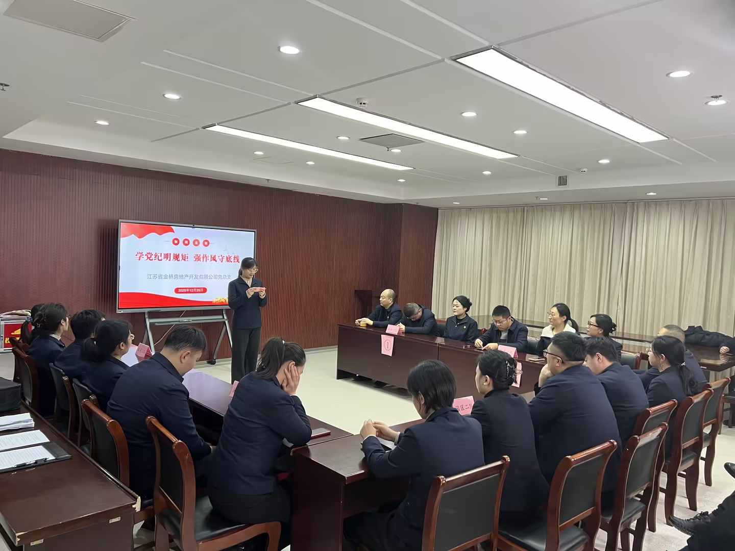 • 為深入貫徹全面從嚴(yán)治黨要求,推動黨紀(jì)法規(guī)學(xué)習(xí)入腦入心,切實強化全體人員紀(jì)律意識與規(guī)矩意識,12月25日下午,金橋房地產(chǎn)公司黨總支成功舉辦“學(xué)黨紀(jì)明規(guī)矩、強作風(fēng)守底線”知識競賽。公司全體人員在以賽促學(xué)、以賽比學(xué)中營造了風(fēng)清氣正的干事氛圍,為公司高質(zhì)量發(fā)展注入廉潔力量。此次競賽不僅是對公司黨紀(jì)法規(guī)學(xué)習(xí)成果的一次集中檢驗,更是一堂生動鮮活的廉潔教育課,讓全體參賽人員在競技比拼中深化了對黨紀(jì)條例的理解與把握,進一步筑牢了拒腐防變的思想防線。大家紛紛表示,將以此次競賽為契機,把所學(xué)所悟轉(zhuǎn)化為履職盡責(zé)的行動自覺,嚴(yán)格遵守黨紀(jì)黨規(guī)與公司各項規(guī)章制度,以更加堅定的信念、更加務(wù)實的作風(fēng)投入到工作中,為公司持續(xù)健康發(fā)展貢獻力量。                                                                                                              &nb...