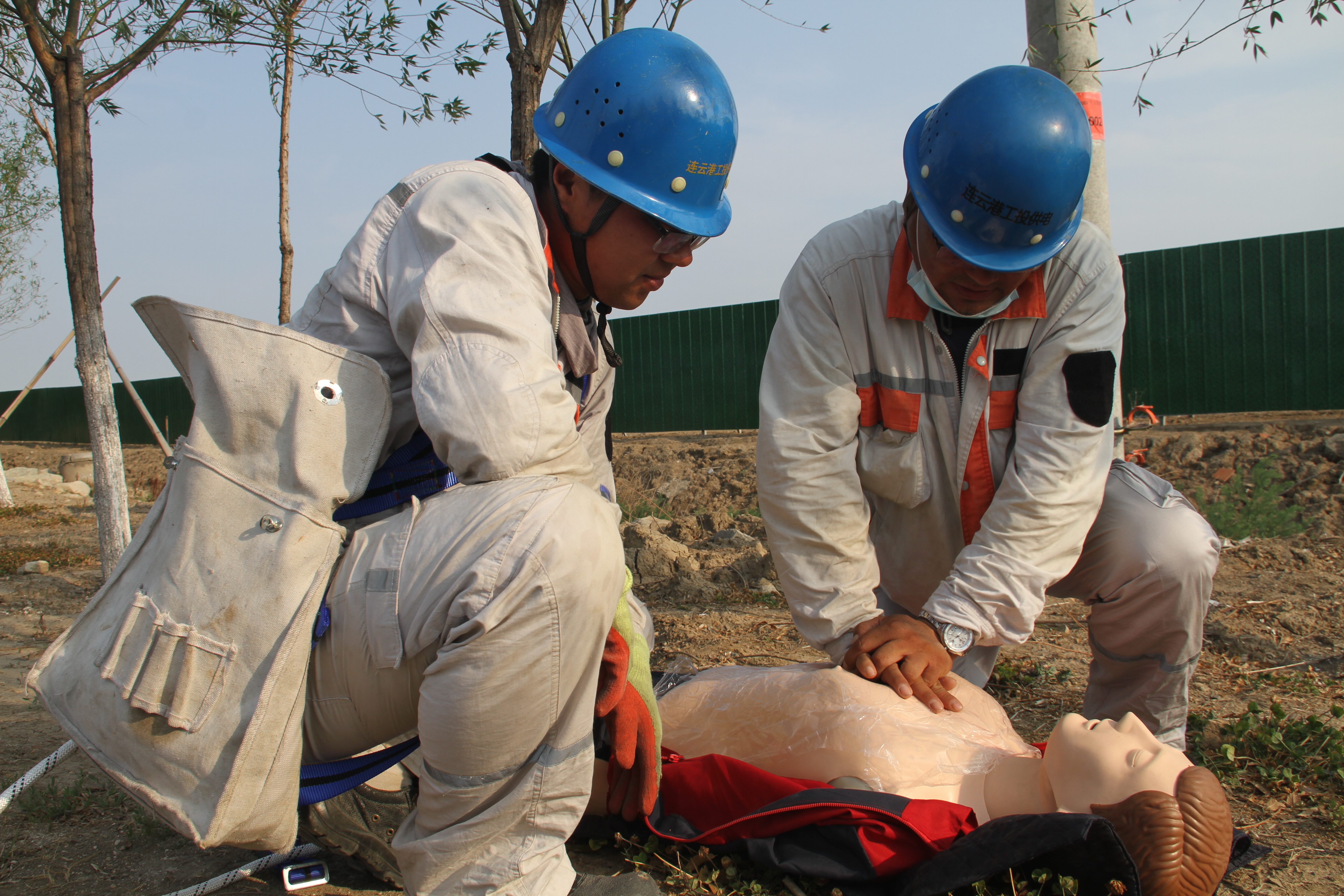 本次活動(dòng),模擬臺(tái)北變電所10KV開太線創(chuàng)智街區(qū)支線2#桿AB接地短路,絕緣導(dǎo)線過負(fù)荷,燃燒滴落物引燃路邊雜草;1名線路搶修人員處置時(shí)發(fā)生高處墜落。承辦單位臺(tái)北供電所現(xiàn)場(chǎng)運(yùn)行值班人員按操作票流程模擬倒閘操作、并宣讀流程,撥打公司值班室電話,搶險(xiǎn)救援組接到電話,向總指揮匯報(bào),總指揮下達(dá)搶修救援指令。隨即臺(tái)北供電所派出2名外線人員,進(jìn)行干粉滅火器滅火模擬操作,搶修救援組立即奔赴現(xiàn)場(chǎng),了解情況展開工作,采取初步救援措施;醫(yī)療救護(hù)小組人員配合所內(nèi)救護(hù)人員1名,同步領(lǐng)取物資。現(xiàn)場(chǎng)模擬醫(yī)療救援,進(jìn)行傷口消毒處理,無菌紗布綁扎演示,醫(yī)療救護(hù)組處理完畢,宣讀傷情另外嚴(yán)重情況,須120急救,啟動(dòng)應(yīng)急程序,模擬撥打120電話。模擬人員進(jìn)行上桿裝備、勞保裝備穿戴演示,宣讀注意事項(xiàng),并進(jìn)行分支箱接頭、安裝、斷線緊線操作演練等。活動(dòng)環(huán)節(jié)結(jié)束后,安全管理部劉福勇宣告事故應(yīng)急救援結(jié)束。