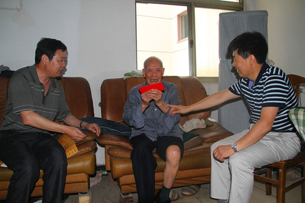 7月22日下午,公司領導盧明生、王志軍前往全國勞模鄭友根家中看望慰問,詢問百歲老人的生活情況和存在的實際困難,為他送去了水果和困難救助金,感謝老人為鹽業(yè)系統(tǒng)作出的貢獻。(徐靜)