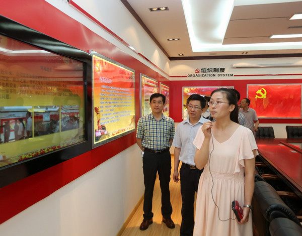 6月9日,市委新社工委召開黨建工作觀摩匯報會,市委組織部副部長、市委黨建辦主任陳軍帶領(lǐng)觀摩團,在集團公司領(lǐng)導鄭宜虎的陪同下,到我公司黨建活動室觀摩。