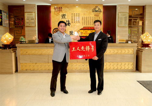 五一前夕,集團公司董事長、黨委書記顧永庚向榮獲2014年度江蘇省“工人先鋒號”榮譽稱號的公司淮鹽大酒店授牌。顧董事長勉勵淮鹽大酒店全體員工繼續(xù)發(fā)揚這種爭創(chuàng)一流的巨大熱情和無窮智慧,珍惜榮譽再創(chuàng)佳績,繼續(xù)擔當服務行業(yè)的領跑者。這是淮鹽大酒店獲得2013年連云港市“工人先鋒號”和2012年連云港市“五一巾幗標兵崗”后又一榮譽。