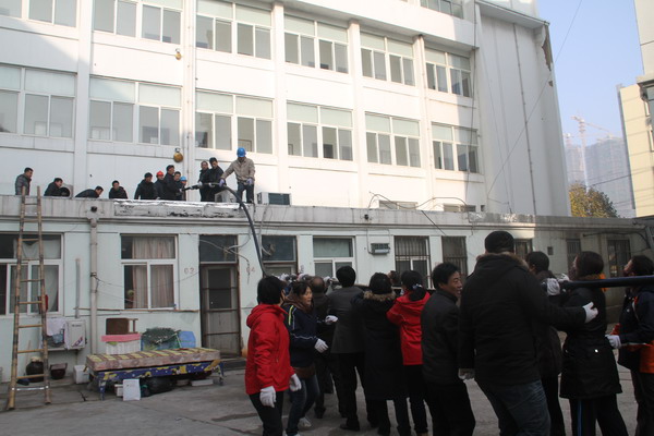公司承擔集團公司ERP項目機房電纜工程,工期較緊。該工程電纜系低壓五芯電力電纜(240*3+120*2),總長230米,重近3噸。施工現場又處于金橋新村小區(qū)內,全靠人力施工,需要施工人員較多;而公司工程部和供電所工作人員大都正在忙于其它電力工程,能抽調的人員非常有限。為不誤工期,轉變工作作風,公司在領導班子親自帶隊,機關工作人員全體出動,齊心協(xié)力,拖、拉、拽、送,敷設電纜上墻,并吊送到位于五樓的ERP項目機房。