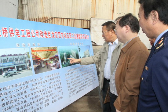 在巨龍農(nóng)貿(mào)市場,范總向秦國丞副秘長簡要匯報了巨龍農(nóng)貿(mào)市場的基本情況以及改造方案,通過改造實現(xiàn)市場空間布局合理化、設施建設標準化、長效菅理規(guī)范化的總體目標。秦國丞副秘書長對公司巨龍農(nóng)貿(mào)市場的改造方案給予較高評價,充分肯定了公司在創(chuàng)建國家文明衛(wèi)生城市、加強我市菜藍子工程建設、提升群眾幸福指數(shù)方面作出的貢獻;同時,要求我公司繼續(xù)深入調(diào)研,盡快制定具體實施方案,報政府部門審批;并指示隨行的有關部門人員,要給予全力配合,對改善民生工程開綠燈。(司宣 盧正清)