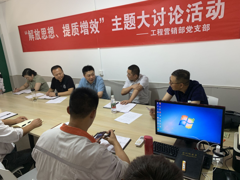 8月11日上午,工程營銷部開展“解放思想、提質(zhì)增效”主題大討論活動(dòng),公司黨委書記、總經(jīng)理宋晟曄,總經(jīng)理助理徐健,生產(chǎn)技術(shù)部部長張雷海參加討論。會(huì)議由工程營銷部副部長賀通華主持。