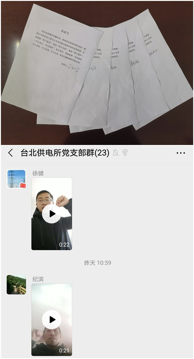 為充分貫徹落實(shí)黨中央關(guān)于打贏疫情防控阻擊戰(zhàn)的重要指示精神。2月13日,臺北供電所黨支部開展了“防控疫情,我們在行動”主題黨日活動。該支部以“我是黨員我宣誓”、“疫情防控我承諾”、“我為疫情防控獻(xiàn)一策”系列活動,充分利用網(wǎng)絡(luò)直播平臺和微信APP,通過錄制個(gè)人宣誓短視頻、承諾書簽字、集體線上學(xué)習(xí)等方式方法,號召廣大黨員同志充分發(fā)揮黨員先鋒模范作用,在抗擊疫情的關(guān)鍵時(shí)刻,必須服從命令、聽從指揮;堅(jiān)守崗位、恪盡職守;堅(jiān)定信心、沖鋒在前;不忘初心,牢記使命;堅(jiān)決打贏疫情防控阻擊戰(zhàn)。(錢明華)