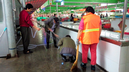 當人們歡度國慶佳節(jié)之時,公司巨龍農(nóng)貿(mào)市場全體職工卻是在創(chuàng)衛(wèi)工作現(xiàn)場度過的。