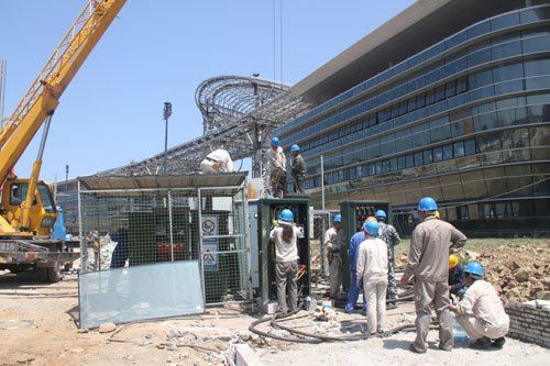 該所在承攬此項(xiàng)工程后,克服施工時(shí)間緊、現(xiàn)場地形復(fù)雜、交叉作業(yè)多等困難,精心策劃、周密部署,嚴(yán)格按照工程施工預(yù)案,在演藝廣場和美食街地段新增一條10千伏電源,改造兩處10千伏電源進(jìn)口,敷設(shè)5公里10千伏高壓電纜,設(shè)置11臺電源分支箱、3臺路燈廂變,安裝5臺400千伏安變壓器,最終形成了一個(gè)主供、兩個(gè)備用的供電輸送網(wǎng)格局。