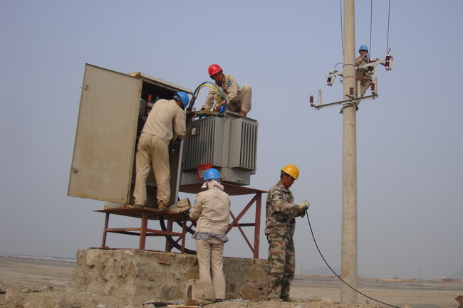 金海一期二次B3區(qū)加固地基工程要求在5月10前具備全面抽真空條件。臺北供電所承擔(dān)此項電力工程,需架設(shè)10千伏線路2280米,安裝19臺變壓器及配電箱,工程總量170萬元。為使工程按時完成,維護供電所的信譽,展示自己的實力,該所細心謀劃,調(diào)配車輛,拉材備料,認真組織人力抓緊施工。現(xiàn)場施工條件惡劣,亂石堆放,腳下無路,給施工作業(yè)帶來重重困難。職工作業(yè)汗流浹背,吃苦耐勞,無怨無悔。憑著頑強的斗志,認真地堅守的崗位,聚精會神地操作,為連云新城“一年拉框架,兩年出形象,三年基本建成”的戰(zhàn)略建設(shè),奉獻自己的力量。