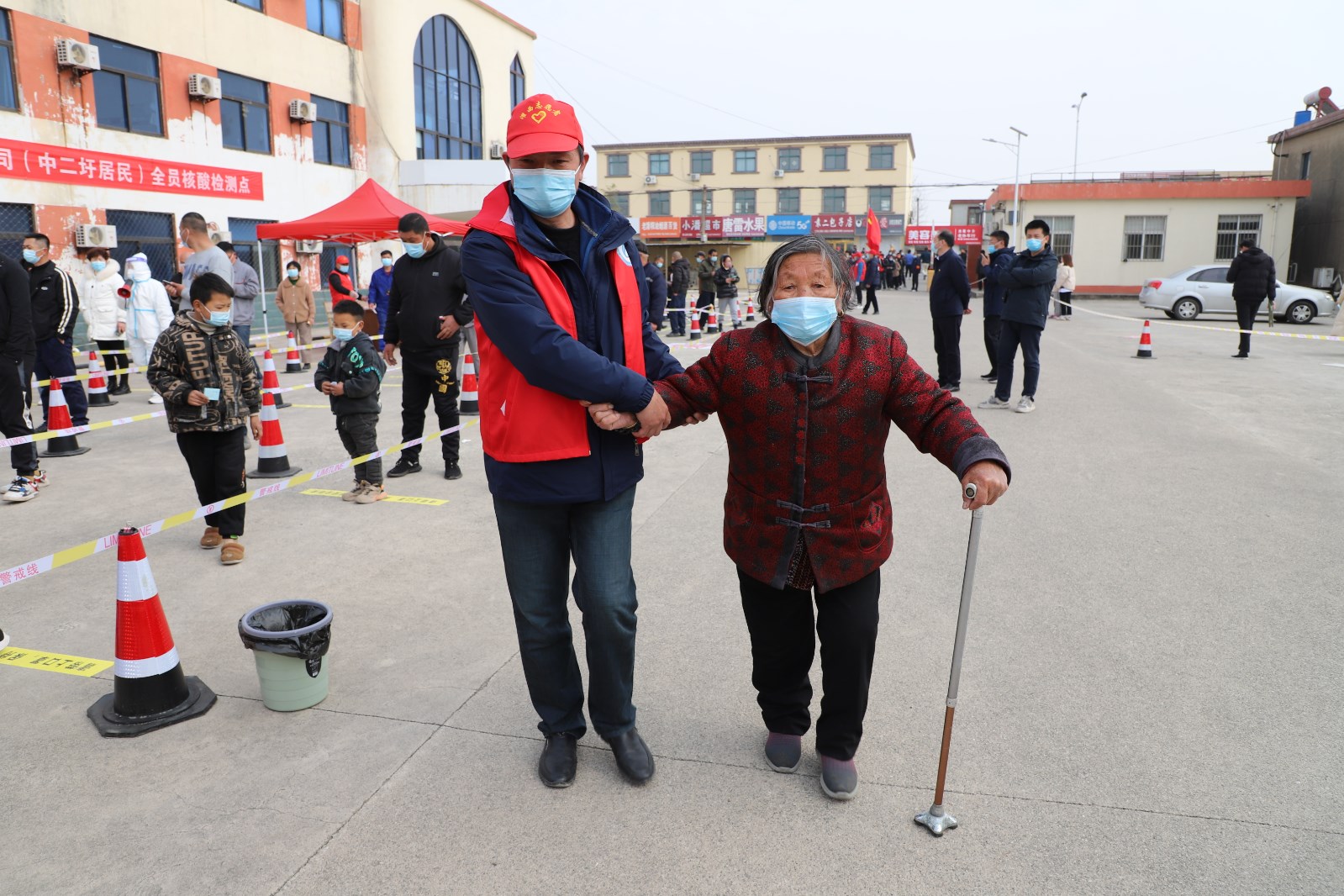 檢測當(dāng)天上午7點半核酸檢測點準(zhǔn)備就緒,核酸檢測正式開始。檢測點用警戒線拉起通道,居民均按規(guī)定佩戴口罩有序排隊。排隊候檢的居民先登記身份信息及聯(lián)系方式,再由引導(dǎo)員帶隊到指定點位接受醫(yī)護(hù)人員的采樣,年紀(jì)大且腿腳不便的老人由現(xiàn)在志愿者攙扶,優(yōu)先進(jìn)行核酸檢測。采樣完畢后,大家按照標(biāo)識盡快從出口處離開檢測點,減少人員聚集。王靜、許冬彥等志愿者不時地提醒大家注意安全、保持一定安全距離,并維持秩序。整個過程緊張有序,核酸檢測工作于下午五點左右順利完成。