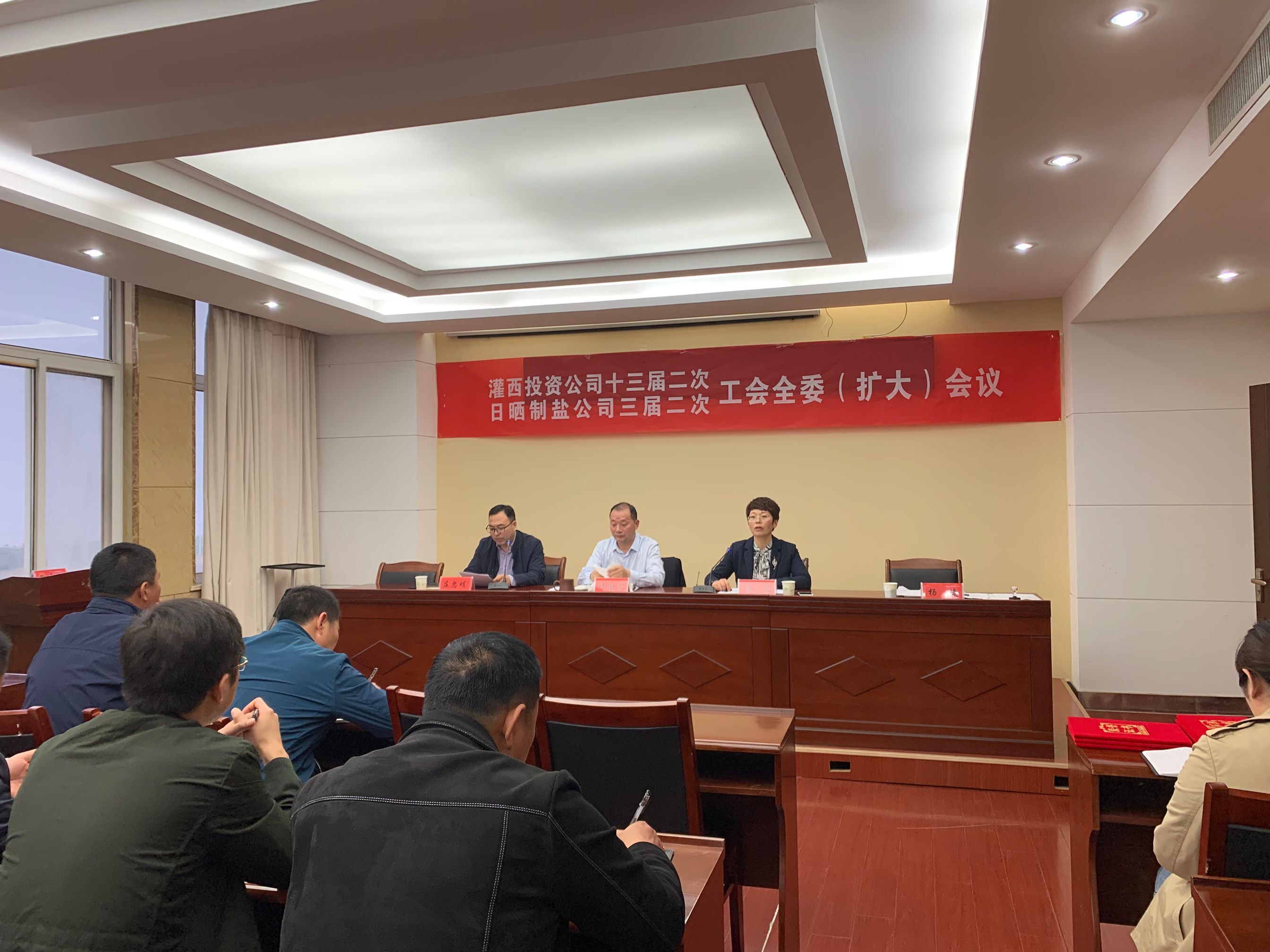 428日,灌西投資公司召開十三屆次、日曬制鹽公司三屆次工會全委擴(kuò)大會議,公司黨委書記、董事長、總經(jīng)理李國文出席會議并講話,工會主席王宏作工作報(bào)告。工會委員會全體委員,各單位工會主席、女工委主任參加會議。
