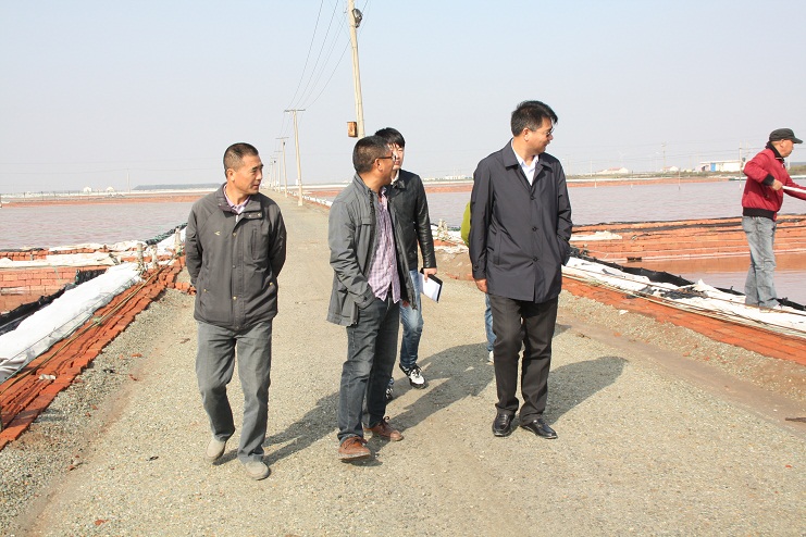 10月27日上午,王德志董事長深入日曬制鹽生產(chǎn)一線,就目前的原鹽生產(chǎn)的重點問題、一線生產(chǎn)現(xiàn)狀等進行了調(diào)研,新河分公司、生產(chǎn)服務(wù)中心相關(guān)人員陪同調(diào)研。