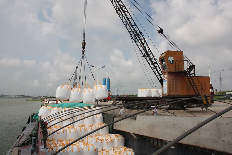 8月3日上午9點左右,當(dāng)筆者來到宵洋物流公司五灌河碼頭時,這里已經(jīng)到處是工人們忙碌的身影,吊機(jī)揮舞巨臂、車輛川流不息、現(xiàn)場管理者來回奔忙指揮、作業(yè)人員揮汗如雨緊張忙碌。