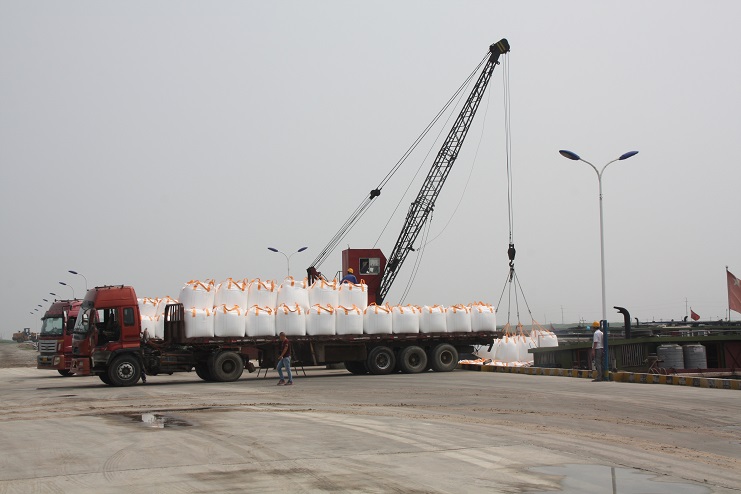據(jù)了解,在國慶長假期間,該公司對各項(xiàng)工作做了充分的準(zhǔn)備,加強(qiáng)節(jié)日期間碼頭正常運(yùn)營管理,對碼頭工人進(jìn)行了排班,對吊裝設(shè)備、裝卸人員進(jìn)行細(xì)致的安排部署,確保了國慶長假生產(chǎn)經(jīng)營不停息。雨日過后,從3日開始,五灌河碼頭就是一派車水馬龍景象,只見一輛輛滿載噸袋的運(yùn)輸卡車整齊的停放在路邊,一艘艘貨船在泊位上靜靜停泊等待,兩臺吊車正在進(jìn)行著噸袋吊裝,掛鉤、移動、解鉤,車上船艙內(nèi)工人密切配合,動作熟練,將潔白的噸袋穩(wěn)穩(wěn)地裝船,每天吊裝噸袋30多車。在不遠(yuǎn)處的自卸碼頭,一輛輛運(yùn)鹽車輛,通過卸鹽滑板,直接將滿車斗的鹽倒入船艙,僅兩三天就裝鹽2000余噸。(季興勝)