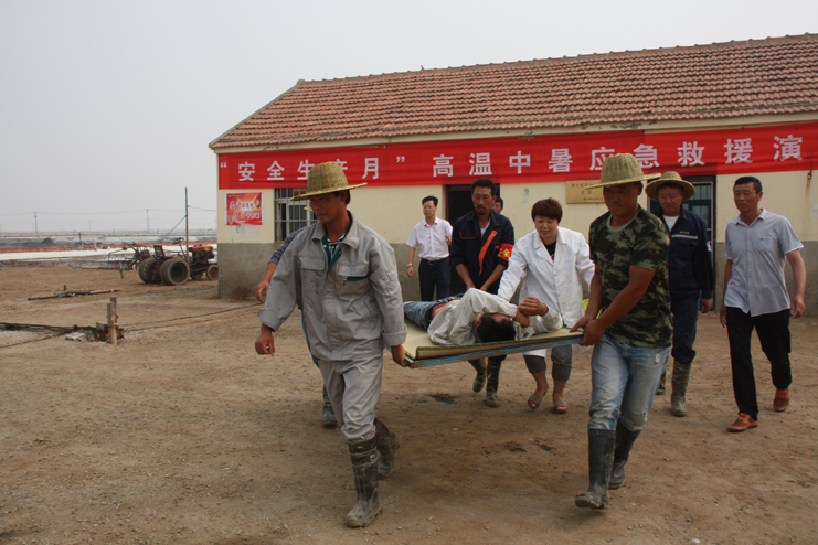 為了加強公司全員的安全預(yù)防意識,增強應(yīng)對緊急事件的自我保護和防衛(wèi)能力, 6月29日上午,灌西投資公司在新河制鹽分公司九班聯(lián)合舉行“高溫中暑應(yīng)急救援演練”活動,公司副總經(jīng)理古浩光、各單位分管安全領(lǐng)導(dǎo)、日曬制鹽一線班組長參加觀摩。