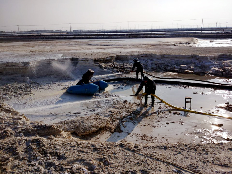 來到埒南制鹽分公司6班硫酸鈣清理現(xiàn)場(chǎng),只見水槍里射出的水柱把硫酸鈣廢渣沖的四處飛濺,伴隨機(jī)器轟鳴聲硫酸鈣廢液被送出灘外,工友們穿好雨衣,戴好頭盔,手握水槍,一站就是3、4個(gè)小時(shí),他們兩人一組,輪番作業(yè),確保息人不息機(jī)。班長(zhǎng)胡繼華信誓旦旦的說我們要發(fā)揚(yáng)一不怕苦,二不怕累的革命精神,發(fā)揚(yáng)“有條件要上,沒有條件創(chuàng)造條件也要上”的大慶精神,寧愿多加班,少睡覺也要按期保證完成硫酸鈣清理工作。
