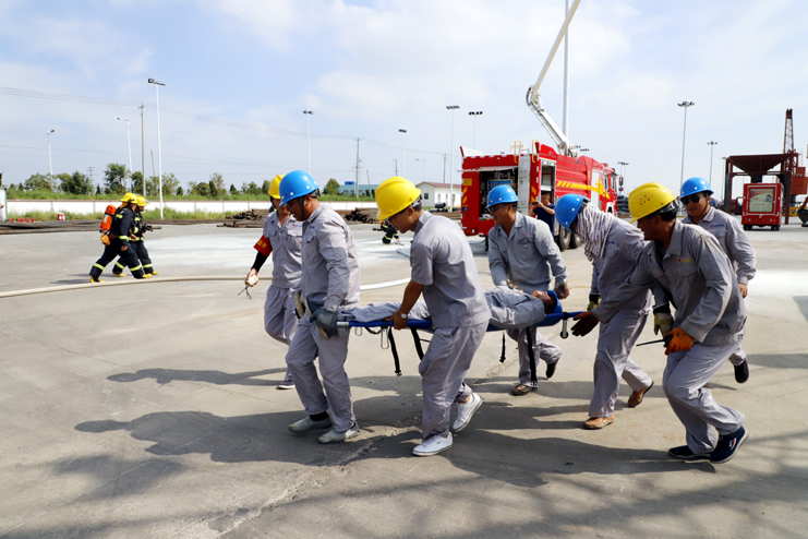 此次演練模擬電器短路和起火事故開展應(yīng)急救援。碼頭現(xiàn)場(chǎng)吊機(jī)在操作中發(fā)生主電機(jī)電流過(guò)載,配電箱出現(xiàn)異常,吊機(jī)作業(yè)操作無(wú)法正常工作,主機(jī)發(fā)出報(bào)警,吊機(jī)剎車系統(tǒng)出現(xiàn)失靈,電器設(shè)備出現(xiàn)故障,繼而發(fā)生初期電火,報(bào)警信號(hào)發(fā)出后30秒內(nèi)該區(qū)域內(nèi)所有人員疏散完畢,并撥打119火災(zāi)救援電話,并迅速遏制火情,撲滅火災(zāi),有效保護(hù)在場(chǎng)人員人身安全及公司財(cái)產(chǎn)安全。整個(gè)演練過(guò)程,參演員工嚴(yán)格按照應(yīng)急預(yù)案要求,積極配合,有序、迅速地完成疏散及滅火等演練任務(wù),人員及財(cái)產(chǎn)得到了有效保護(hù),演練達(dá)到了預(yù)期效果。