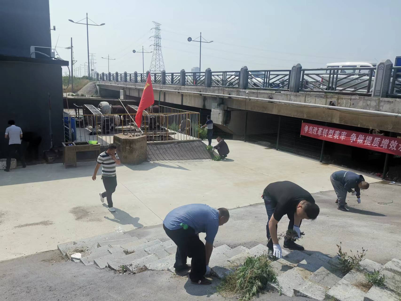 以“紅心永向黨,奮進正當(dāng)時”為主題開展一次黨員”集中活動日”活動。6月29日上午,資源管理中心黨支部組織全體黨員和積極分子到六圩閘清理閘站室內(nèi)、外衛(wèi)生。經(jīng)過大家的共同努力,閘站里外的雜草、垃圾等全部清除干凈,整個閘站煥然一新。