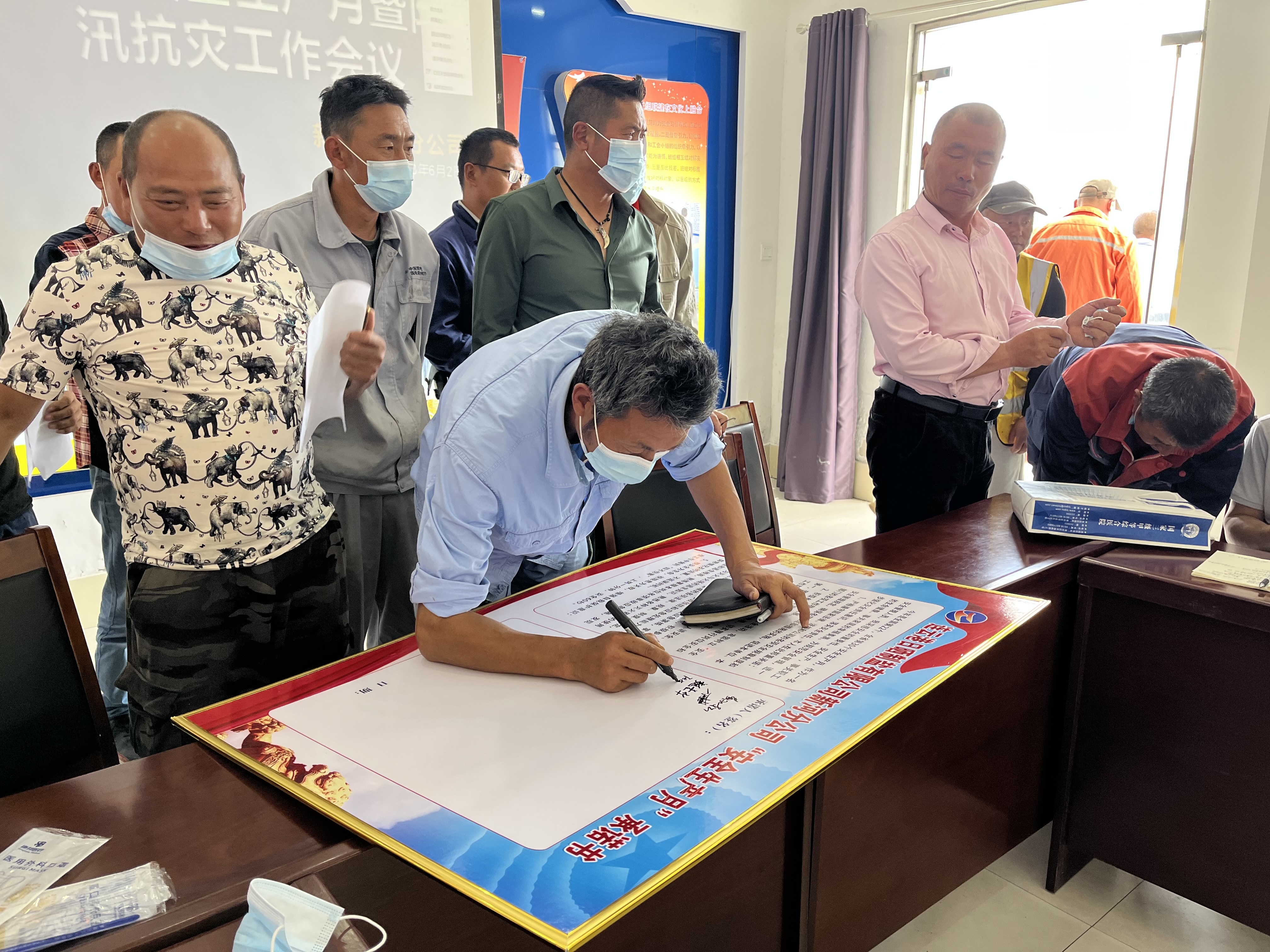 分公司經(jīng)理程龍按照會議的要求對我公司的安全生產(chǎn)及防汛工作作出了進一步的安排部署,要求分公司全體人員手機在汛期做到24小時保持暢通,各班組對灘內的抗災工程抓緊落實。特別是灘內的排淡溝道、塑池全封閉、、軟稟腳、泥包、泥袋、小馬凳等防風防雨措施要按期完成。后勤維護組抓緊完善用電設施、強排站等應急設備,確保汛期安全形勢穩(wěn)定。會議最后,全體班組長一起遞交了防汛安全責任狀,簽訂了“安全生產(chǎn)月”承諾牌。(趙斯中)