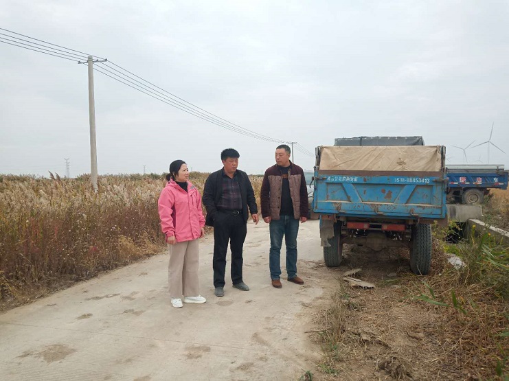在明威公司外包種植戶秋收現(xiàn)場,趙莉莉?qū)嵉夭榭?/span>秋收進度,了解各種植戶秋收作業(yè)情況。認真詢問糧食產(chǎn)量情況,并與種植戶交談,仔細詢問秋收中遇到的困難和問題。