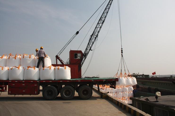 4月30日上午9時(shí)許,隨著一聲汽車長(zhǎng)笛,一輛載有近40噸化工物資的卡車徐徐停靠在宵洋物流公司五灌河碼頭邊,緊接著碼頭鐵臂起舞,機(jī)械操作工嫻熟地操縱著塔吊機(jī)械,準(zhǔn)確地將一包包噸貸物資裝卸在碼頭邊的貨船中。。。。。。自此,一輛輛滿載40余噸貨物的卡車源源不斷向碼頭駛來(lái)。