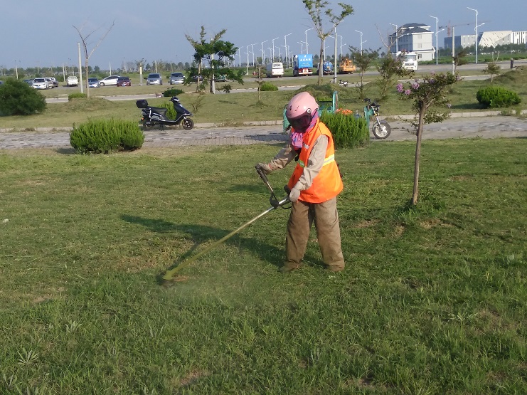 8月11日下午,在臨港產(chǎn)業(yè)區(qū)行政中心的一片草坪上,南翼綠化養(yǎng)護(hù)工人正在除草,修整草坪,在陽光的照耀下,養(yǎng)護(hù)工人的橙色工作服在綠郁蔥蔥的草坪映襯下,分外醒目。只見他們頭戴防護(hù)頭盔,手持割草機,認(rèn)真細(xì)致地修整草坪,割草機轟鳴聲不絕于耳,尤如交響樂,青草漬的清香味頓時撲鼻而來,一會兒功夫,就清除一大片雜草,原先雜草叢生的草坪煥然一新。當(dāng)前,該公司正深入開展學(xué)習(xí)“華茂精神”活動,結(jié)合公司實際,認(rèn)真學(xué)習(xí)華茂公司的創(chuàng)業(yè)精神、擔(dān)當(dāng)精神、團(tuán)隊精神和奉獻(xiàn)精神,激勵員工發(fā)揚艱苦奮斗不怕吃苦,愛崗敬業(yè)甘于奉獻(xiàn)的精神,不斷提高員工的各項素質(zhì),開展技能與業(yè)務(wù)培訓(xùn),充分發(fā)揮好各位員工的內(nèi)在潛能,樹立主人翁的工作熱情,做好綠化養(yǎng)護(hù)工作,全力向公司年度目標(biāo)任務(wù)沖刺。(季興勝)