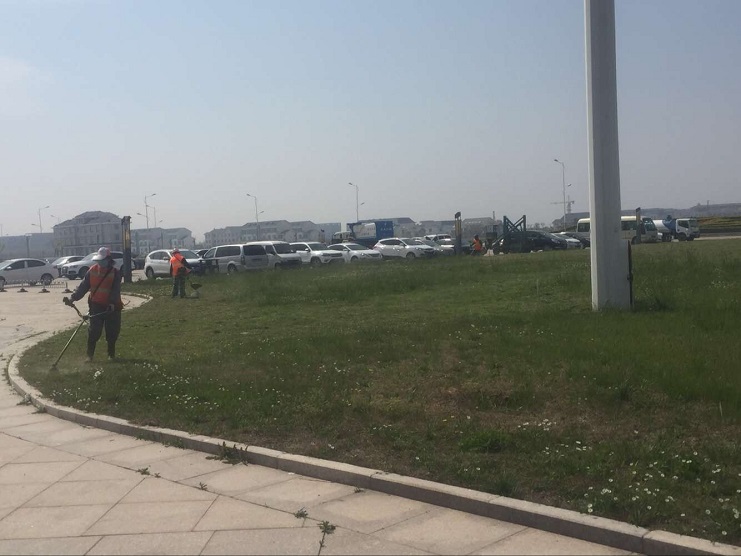 南翼工人清理雜草和垃圾 美化環(huán)境