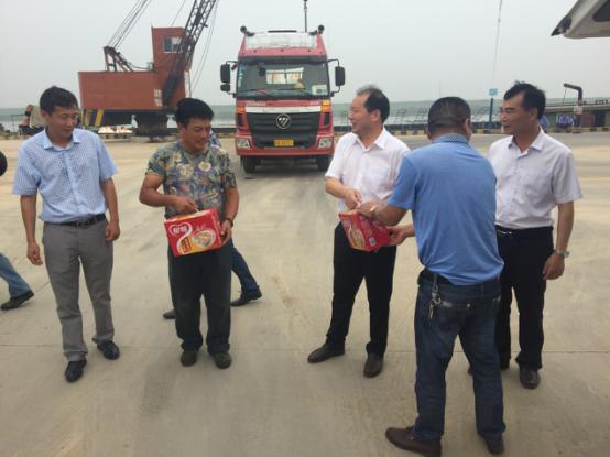 2017年7月18日星期二下午灌西鹽場(chǎng)投資公司領(lǐng)導(dǎo)到宵洋物流有限公司碼頭送清涼看望一線員工!在黨委書記董事長(zhǎng)王德志同志、總經(jīng)理李國(guó)文同志、工會(huì)主席王保平同志的帶領(lǐng)下親自到我宵洋物流有限公司碼頭看望一線員工,送清涼。炎炎夏日,酷暑當(dāng)頭一線員工永遠(yuǎn)沖鋒在前,領(lǐng)導(dǎo)的關(guān)懷更是永不停止!宵洋物流全體員工致謝!(宵洋王然)