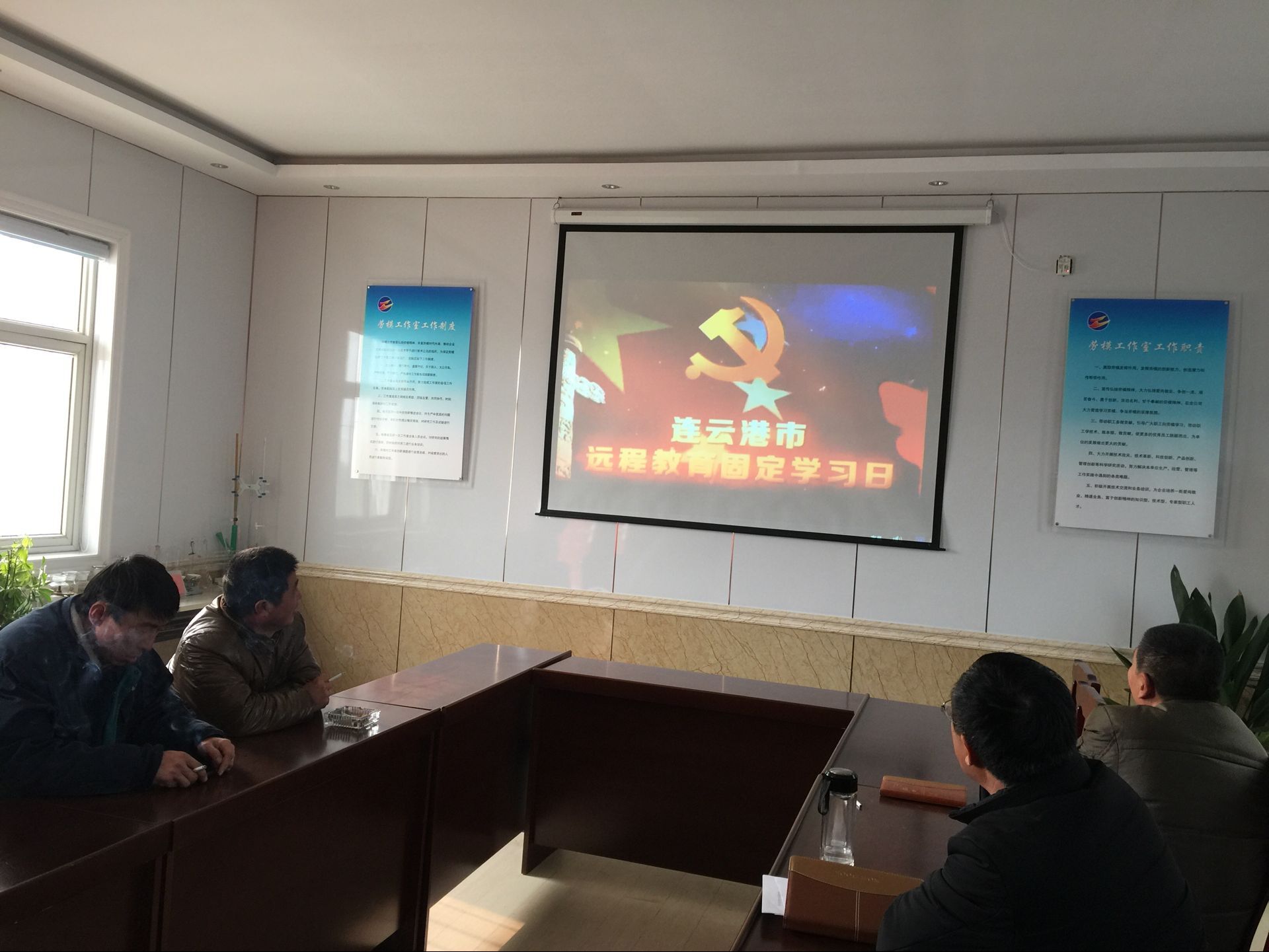1月18日,新河制鹽分公司黨員、入黨積極分子在勞模創(chuàng)新工作室觀看愛(ài)國(guó)主義電影《空天獵》。