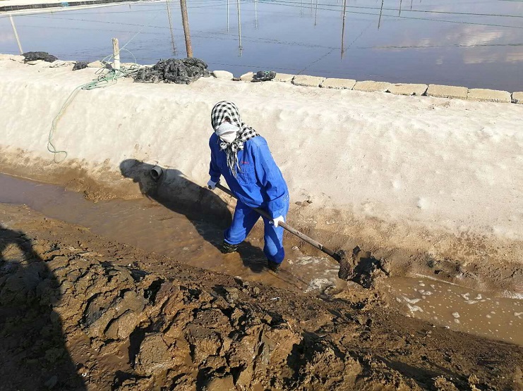 海鹽基地三個(gè)班組,每班集中人力從門(mén)面溝開(kāi)始做起,依次咸頭、甜頭。走進(jìn)灘頭,大家手握鐵锨有挖泥的、踩泥的、澆水的、抹平的,干得熱火朝天。下步將進(jìn)入和格壓格階段工作。(實(shí)業(yè)公司)