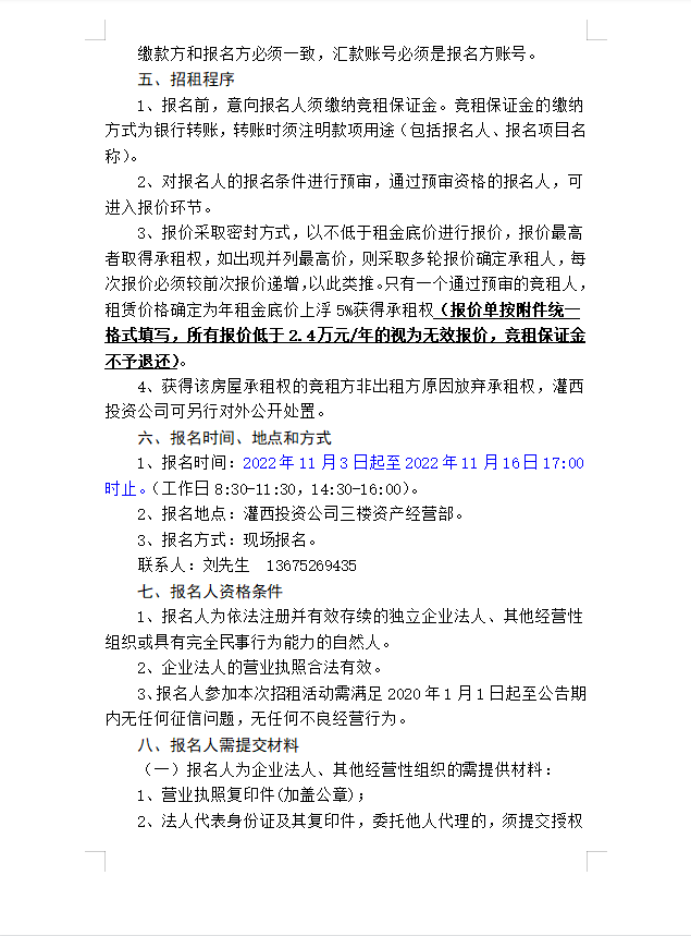 連云港市工投集團(tuán)灌西投資有限公司房屋對外公開招租公告