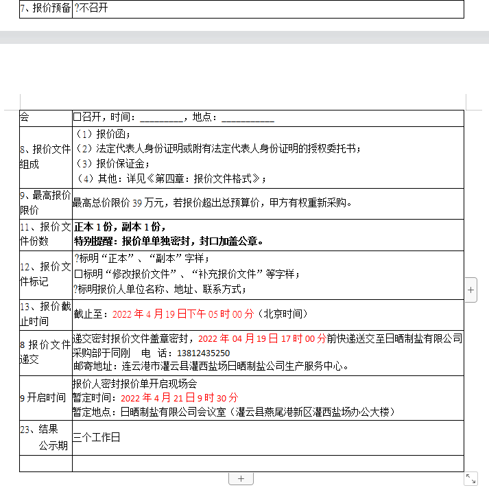 密封報(bào)價(jià)開(kāi)啟時(shí)間及地點(diǎn):20220421日前,如有特殊情況時(shí)間另行通知。