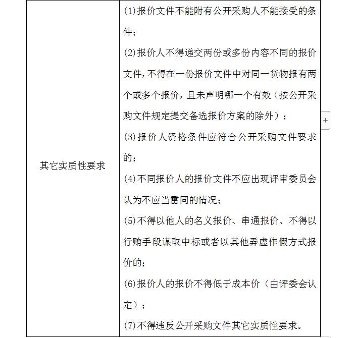1、初步評(píng)審(符合性審查)是指評(píng)審委員會(huì)審查每個(gè)報(bào)價(jià)人及每一報(bào)價(jià)文件是否對(duì)公開(kāi)采購(gòu)文件提出的所有實(shí)質(zhì)性要求和條件做出響應(yīng),有無(wú)顯著的差異或保留。評(píng)審委員會(huì)將僅對(duì)在實(shí)質(zhì)上響應(yīng)公開(kāi)采購(gòu)文件要求的合格報(bào)價(jià)(有效)文件進(jìn)行評(píng)估和比較。