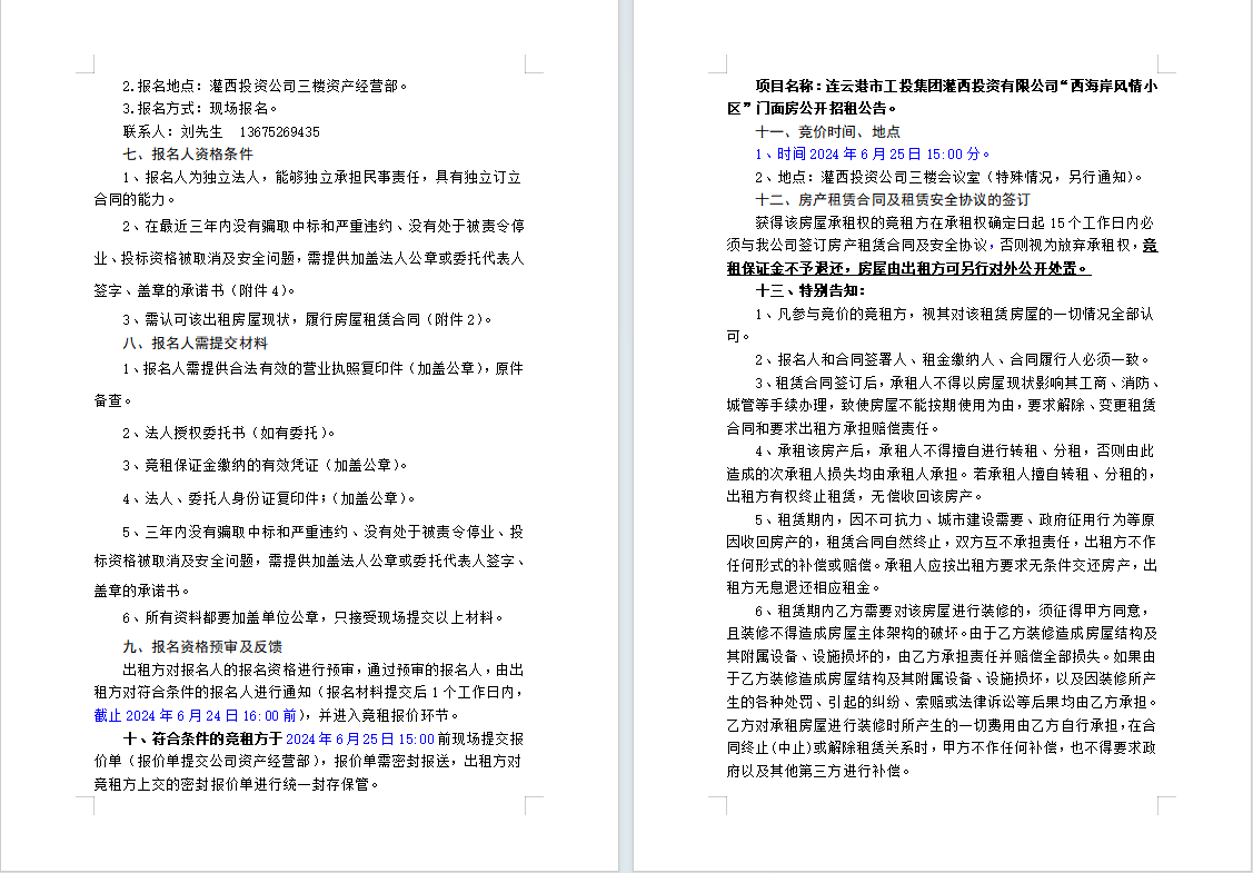 連云港市工投集團(tuán)灌西投資有限公司“西海岸風(fēng)情小區(qū)”門面房公開招租公告