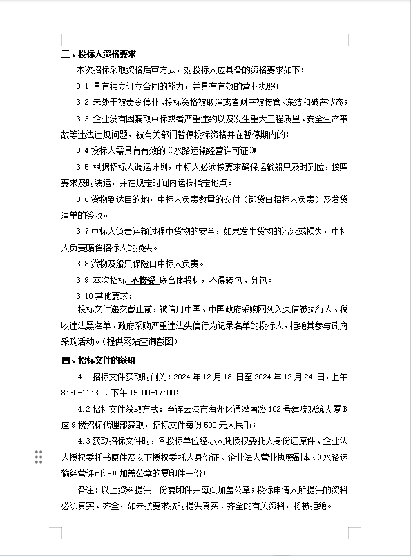 連云港宵洋物流有限公司原鹽內(nèi)河船舶運(yùn)輸合格供應(yīng)商采購招標(biāo)公告