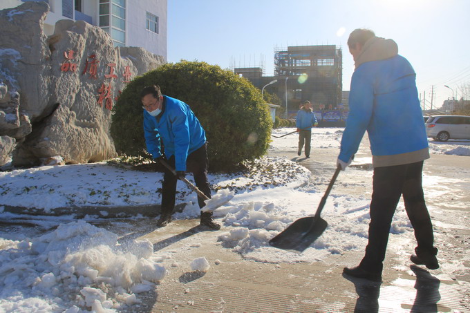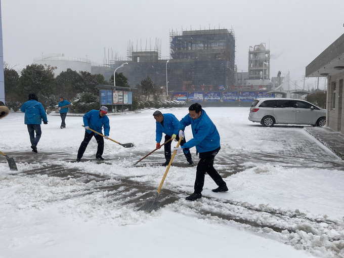 12月29日,連云港市各地普降大雪,氣溫低、積雪厚、道路結(jié)冰,給公司職工的安全出行和生產(chǎn)生活帶來很多不便。29-30日,公司領(lǐng)導(dǎo)朱桂玉、曹開明、田磊、何啟明、邵琴、李忠祥帶領(lǐng)廣大職工群眾開展了義務(wù)掃雪活動(dòng)。大家冒著風(fēng)雪,不畏嚴(yán)寒,對(duì)路面積雪進(jìn)行清掃,鏟除了廠區(qū)主干道的冰層,保障了公司職工安全出行和安全生產(chǎn)工作的開展。(金宣)