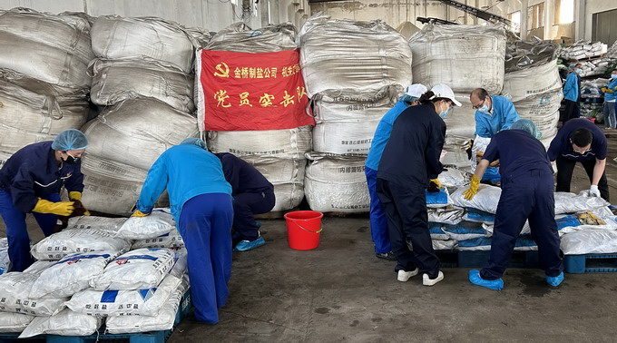 6月6-67日,我公司黨委開展“我為黨旗增光添彩”志愿服務活動。機關(guān)支部共30名黨員協(xié)助車間整理庫房,共整理成品鹽130余噸。活動的開展進一步發(fā)揮了“兩個作用”,積極踐行了志愿服務精神,為車間一線辦實事、解難題。(金宣)
