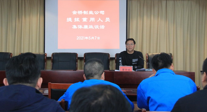 黨委副書記、工會主席曹開明主持會議。他首先與參會人員一起學習了《中國共產(chǎn)黨紀律處分條例》,希望大家增強組織紀律觀念,自覺做到遵守黨的紀律不動搖,執(zhí)行黨的紀律不走樣,時刻用黨的紀律嚴格要求和約束自己,規(guī)范自己的一言一行;他對獲得提拔重用人員的工作給予充分肯定,并提出三點要求:一要站穩(wěn)立場講政治。要對黨絕對忠誠,堅守政治信仰,樹牢“四個意識”,堅定“四個自信”,堅決做到“兩個維護”,自覺做到“五個必須”,嚴格防止“七個有之”。二要清正廉潔守紀律。要嚴守“六大紀律”,主動接受監(jiān)督,習慣在“放大鏡”下用權,在“聚光燈”下工作和生活。三要“一崗雙責”敢擔當。要求大家到新崗位忠實履行職責使命。一把手既要抓好主要業(yè)務,又要抓好黨風廉政建設,負起主體責任,副職承擔自己的分管責任。希望大家不忘初心、牢記使命,嚴守黨紀國法,以良好的人品官德、純潔的黨性修養(yǎng)、優(yōu)異的工作成績,回報組織的重托和希望,在各自的崗位上更加出彩,為金橋制鹽公司的發(fā)展作出更大的貢獻。(金宣、金紀)