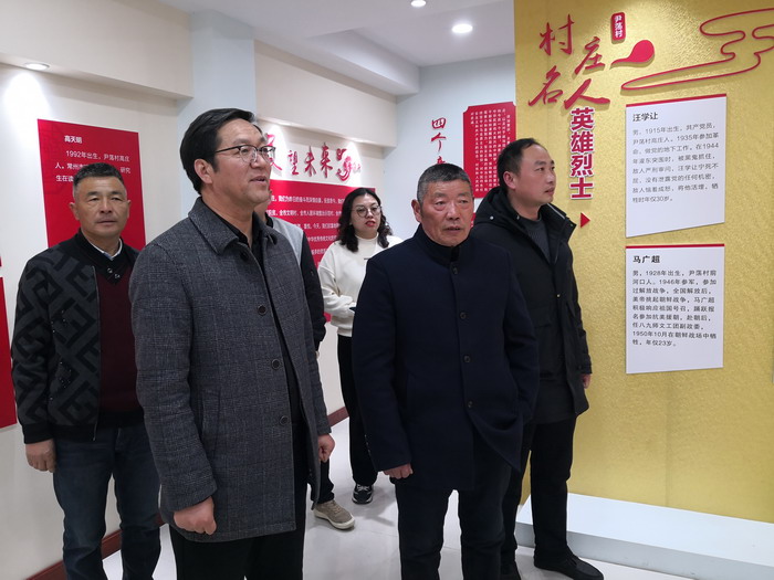 曹開明一行參觀了該村黨員活動(dòng)室、黨史室、村史陳列室,聽取了尹蕩村黨總支書記孫克玉對(duì)該村概況的介紹。雙方就黨史學(xué)習(xí)、文明共建和黨建工作開展等方面進(jìn)行了深入的溝通交流。