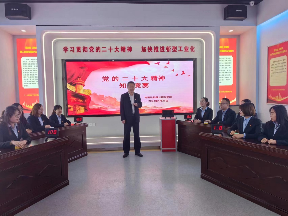 為深入學(xué)習(xí)貫徹黨的二十大精神,喜迎“五四”青年節(jié),在金融板塊上下?tīng)I(yíng)造濃厚的學(xué)習(xí)氛圍,踐行集團(tuán)黨委“解放思想強(qiáng)引領(lǐng)、提質(zhì)增效創(chuàng)佳績(jī)”黨內(nèi)主題教育實(shí)踐活動(dòng)和支部“七個(gè)一”學(xué)習(xí)部署要求,4月30日,格斯達(dá)公司黨支部在公司五樓會(huì)議室舉辦“迎五四●踐行新思想、奮進(jìn)新征程”黨的二十大知識(shí)競(jìng)賽活動(dòng)。